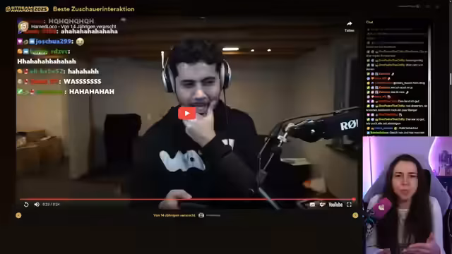 00:37:12Die Streamerin kündigt an, dass sie heute keine Clip Queue machen wird, sondern stattdessen weitere Stream Awards Clips ansehen wird, bevor sie zu Valorant wechselt. Sie ist zuversichtlich, dass dafür genug Zeit sein wird. Es wird ein Donny-Clip des Tages erwähnt, der nicht fehlen darf. Eine Diskussion über ein neues Instagram Reel beginnt, in dem es um die Romantisierung von Kriminellen durch Frauen geht. Die Streamerin kritisiert, dass viele Frauen 'Bad Boys' oder Kriminelle anhimmeln und Beispiele wie die Louvre-Räuber oder das Stockholm-Syndrom genannt werden. Sie teilt besonders absurde Kommentare unter ihrem Reel, wie die Forderung, wieder 'Deutsch zu reden', oder die Aussage, dass Sachschaden nicht schlimm sei, solange niemand verletzt wird. Sie stellt klar, dass sie Anglizismen verwendet und es ihr egal ist, ob es jemandem gefällt oder nicht. Sie kritisiert die Verallgemeinerung, dass Frauen schlecht behandelt werden wollen, und betont, dass dies oft an der Person selbst liegt. Sie reflektiert über ihre eigene Entwicklung und wie ihr die Meinung fremder Menschen mittlerweile egal ist, was sie als 'krasse Entwicklung' und 'freigeschalteten Zweig' in einem Spiel beschreibt. Sie bedankt sich für den Support und die gute Stimmung im Chat, die sie motiviert, noch mehr für den Stream zu tun. Es wird humorvoll über einen 'Bredouille'-Alert gesprochen, der von Donny stammt. Die Streamerin betont die Wichtigkeit einer gesunden Beziehung zum Essen und warnt vor Essstörungen, indem sie eine persönliche Erfahrung und die Geschichte einer Bekannten teilt, die wegen Magersucht ins Krankenhaus kam. Sie fordert die Zuschauer auf, auf sich selbst zu achten und bei Problemen Hilfe zu suchen. Sie teilt einen Screenshot von Holly, der fünf Stunden lang in die Kamera starrt, und scherzt über ein mögliches Emote. Es wird über Putzi gesprochen, der früher Cutter und Kameramann für PewDiePie war, und die Streamerin meint, Putzi gehöre vor die Kamera. Sie freut sich auf das spätere Valorant-Spiel mit Knister und Timid. Ein Zuschauer schickt ein Emote, das hinzugefügt wird, und die Streamerin ist begeistert. Die Diskussion über die Kommentare unter ihrem Reel geht weiter, wobei ein Zuschauer die 'abartige weibliche Sexualität' kritisiert, die Kriminelle anhimmelt oder Werwolf-Porno-Romance-Bücher liest. Die Streamerin ignoriert diese Kommentare und erinnert sich an Sonjas Rat, dass solche Kommentare nur dem Algorithmus helfen.