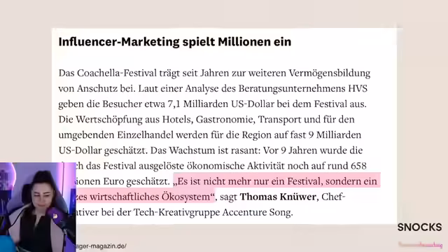 03:11:56Der Streamer beleuchtet die politischen Hintergründe des Coachella-Festivals, das von Milliardär Philipp Anschutz organisiert wird, der ultrakonservative Organisationen unterstützt. Sie stellt die Doppelmolar in Frage, dass sich viele Influencer, die sich für Queersichtbarkeit einsetzen, an einem Event beteiligen, das indirekt queerfeindliche Strukturen finanziert. Gleichzeitig erwähnt sie Influencer, die ihre Einladung abgelehnt haben, aus Gewissensgründen, während andere argumentieren, dass Ästhetik über Ethik gehen sollte. Der Streamer hinterfragt, ob man als Creator bei einem Festival politisch positionieren muss und wie man mit den Widersprüchen umgeht.