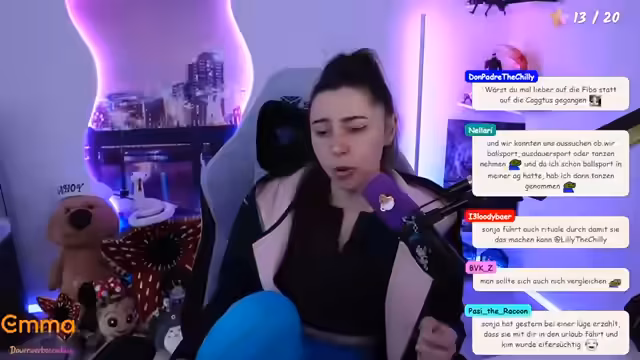 01:31:27Die Streamerin erzählt von einem ungewöhnlichen Erlebnis mit einem neuen Horrorfilm und indirekten Hinweisen auf Bundwehr-Medkits. Sie diskutiert über Google Maps und Monopolprobleme, bevor sie zu persönlichen Geschichten übersehen wechselt. Es folgen Anekdoten über ihre Kindheit, eine Englischlehrerin mit achselhaaren, die sie küsste, und ein Tanzerlebnis mit ihrem Mathelehrer beim Abschiedsfest. Die Streamerin reflektiert über seltsame Schulzeiten, als sie zwischen Tanzen und Kampfsport wählen konnten.