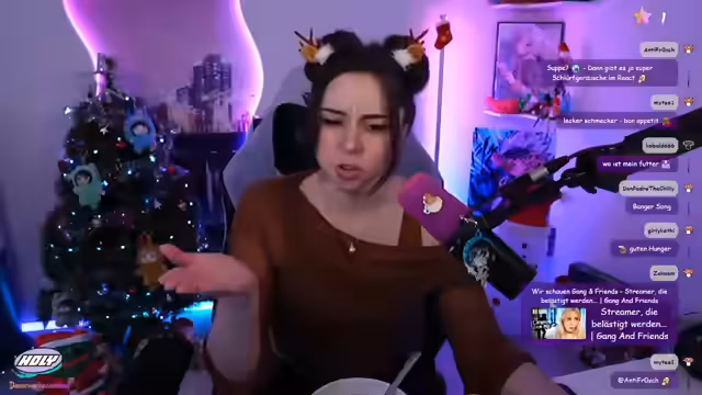 00:12:54Lilly startet den Stream mit einer Entschuldigung für den langen Starting Screen und erwähnt ihre Frisur. Sie isst Haferbrei als zweites Frühstück aufgrund anhaltender Übelkeit, über die sie detailliert berichtet. Sie schildert extreme Magenprobleme vom Vortag mit stundenlanger Übelkeit und Erbrechen, was sie auf Stress und mögliche Unverträglichkeiten zurückführt. Der Chat zeigt Anteilnahme, während Lilly die psychischen Auswirkungen solcher gesundheitlichen Einschränkungen reflektiert.