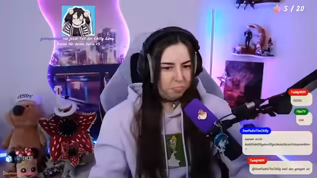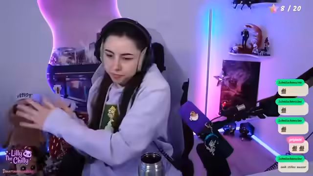 00:08:06Der Stream startet mit technischen Problemen, die zu einem ungewollten Stream-Ende führen. Nach dem Neustart begrüßt die Streamerin ihre Zuschauer und erklärt, warum sie nicht direkt die Kamera neu ausrichten möchte. Persönliche Themen wie eine neue Frisur, die ihre Mama gemacht hat, und eine BFF-Kette werden angesprochen. Der Fokus liegt auf einem lockeren Smalltalk, wobei die Streamerin ihre Vorliebe für Kaffee am Morgen teilt und sich nach den Gewohnheiten der Zuschauer erkundigt.