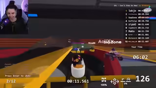 02:16:02Ein Spieler wünscht sich, ein bestimmtes Lied zu hören, während er fährt, mit dem Glauben, dass es seine Performance verbessern wird. Die Spieler tauschen sich über ihre persönlichen Bestzeiten aus, die sie in den Runden erzielt haben, und stellen fest, wie nah sie am Weltrekord vorbeikommen. Dalu führt die Rundenliste an, was zu Diskussionen über Anfänger-Glück führt.