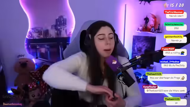 Lillythechilly kündigte neue Sammelkarten an und verloste Exemplare. Sie präsentierte eine Rosetta Stone Partnerschaft mit einem Japanisch-Sprachkurs. Im weiteren Verlauf reagierte sie auf Vollcontent und thematisierte den Austausch von Streamerinnen. Ein Game-Glücksrad mit Matteo soll neue Spiele bringen, außerdem gab es Interaktionen mit dem Chat und Diskussionen über Heiratsanträge.