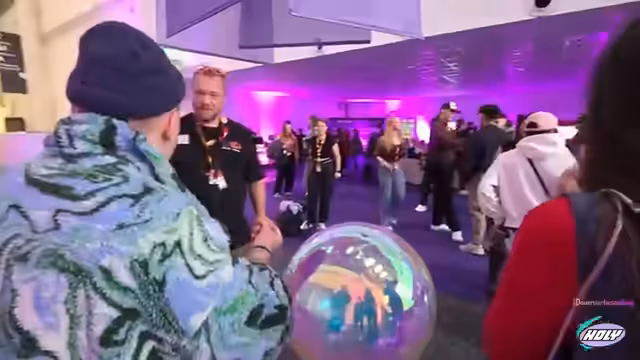 00:23:13Nach einer kurzen Pause und technischen Vorbereitungen setzt sich der Rundgang durch die Messehallen fort. Der Streamer bewegt sich durch die Hallen, zeigt verschiedene Attraktionen wie einen Hundewelpen und äußert sich über die immense Größe der Veranstaltung. Die Atmosphäre wird als voll, aber noch entspannt beschrieben, wobei bereits erste Begegnungen mit anderen Messebesuchern stattfinden.
