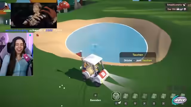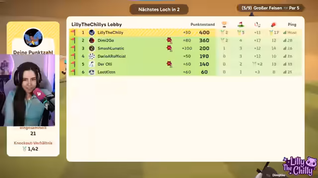 03:22:58Der Stream startet mit dem Spiel Golf It. Die Streamerin und ihre Mitspieler, Olli, Dimi und Ronja, starten in einer Lobby. Es gibt anfängliche technische und spielerische Herausforderungen. Die Streamerin versucht, durch eine Hubbel-Lücke zu springen, was mehrmals misslingt. Olli sabotiert sich selbst, indem er zu stark schlägt und unter der Streamerin landet. Die Mitspieler interagieren viel und stoßen sich gegenseitig ab, was zu chaotischen und lustigen Situationen führt. Die Stimmung ist locker und der Fokus liegt auf dem gemeinsamen, witzigen Gameplay.