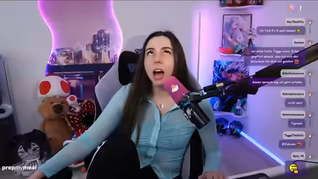 01:20:10Der Stream wechselt zu humoristischen Inhalten. Ein unanständiges Gedicht über eine Biene und eine Blume wird rezitiert, was im Chat für Belustigung sorgt. Es gibt eine Diskussion über die Altersstruktur im Chat, wobei Lilly betont, dass der Durchschnitt bei 35 Jahren liegt. Auch die Unanständigkeit von Clip-Inhalten wird thematisiert, die von Chat-Mitgliedern eingereicht werden.