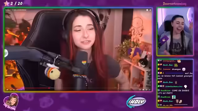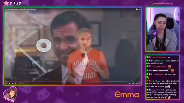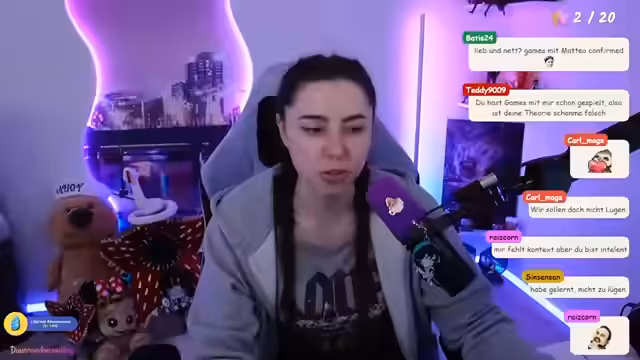 02:54:14Im Stream wird über verschiedene Charaktere und ihre Beziehungen gesprochen. Es gibt Diskussionen über Sonja, Kadi und Matteo sowie ihre Dynamiken. Die Streamerin macht Witze darüber, wie Matteo versucht, Aufmerksamkeit zu erregen, während sich andere wie Jen und Tim ebenfalls für ihn interessieren. Es werden auch humorvolle Kommentare über Attraktivität und Verhalten gemacht, mit einem Fokus auf die komplexen zwischenmenschlichen Beziehungen innerhalb der Stream-Community.