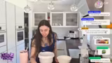 01:49:18Nachdem die Bagels konsumiert wurden, beginnt die Streamerin mit der Zubereitung eines Schokokuchens. Sie misst die Zutaten wie Butter, braunen Rohrzucker und Eier ab und gibt ihre Vorlieben bei Rezeptanpassungen preis. Ihre Versuche, die Butter und Zucker schaumig zu schlagen, scheitern jedoch; der Teig wird fest und erinnert sie an Krümelteig. Obwohl sie sich an das Rezept hält, ist das Ergebnis nicht wie erwartet, was sie frustriert.