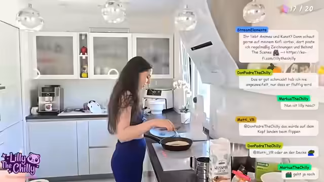 02:55:40Ein Versuch, japanische Fluffy Pancakes zuzubereiten, scheitert an mehreren Punkten. Der Streamerin fehlt ein Handmixer und sie verarbeitet die Zutaten falsch, wie zu viel Mehl und Milch. Das Rezept empfindet sie als unlogisch und kompliziert. Am Ende entsteht kein fluffiger Teig, sondern eine kompromittierte Masse, was zu spontanen Änderungen der Rezeptidee führt und sie zu einem riesigen Pfannkuchen greifen lässt.