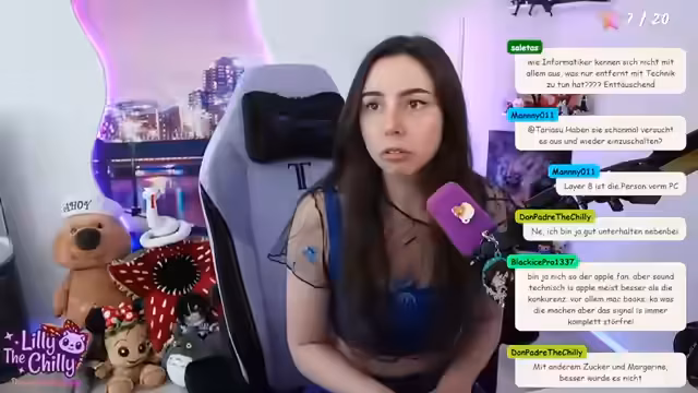 01:25:48Zu Beginn des Streams kämpft die Streamerin mit technischen Problemen, insbesondere mit der Lautstärke und Qualität des Mikrofons. Sie stellt fest, dass das Mikrofon plötzlich schlechter klingt, obwohl sie nichts daran verändert hat. Nachdem sie verschiedene mögliche Ursachen wie einen schmutzigen USB-Stecker oder Überhitzung des Handys ausschließt, testet sie das Mikrofon neu. Nachdem sie den Stecker umgedreht hat, scheint der Sound sich zu verbessern, auch wenn er nicht perfekt ist, und sie beschließt, mit diesem Setup fortzufahren.