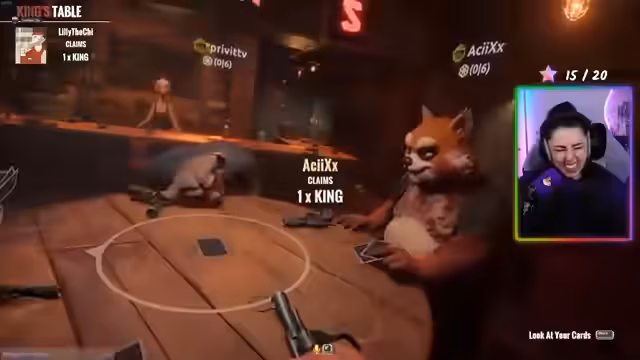03:58:18Nach mehreren Runden 'Liar's Bar' wechseln die Spieler zu einem anderen Spiel namens 'Chaos'. Dieses Spiel ist taktischer und komplexer und erfordert vorausschauendes Denken. Die Spieler erklären die Regeln gegenseitig, da nicht jeder mit den Abläufen vertraut ist. Es entsteht eine dynamische Runde, in der Spieler gezielt aufeinander schießen und die Strategien schnell anpassen müssen.