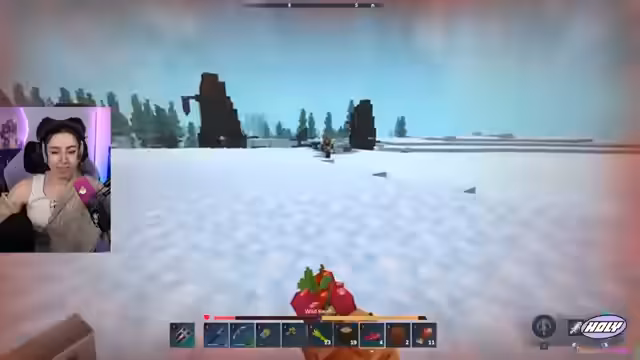 04:03:50In ihrer Basis beginnen die Streamer damit, Pfeile herzustellen, da sie dringend benötigte Munition sind. Kurz darauf stoßen sie auf einen aggressiven Bären auf einem Dach, was zu einem hektischen Kampf führt. Sie beschließen, eine neue Hütte oder Iglu zu bauen und das Gebiet zu erkunden, während sie auf weitere Gegner achten müssen, die spawnen.