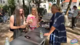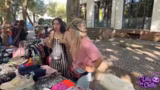 01:26:02Nach einem kurzen technischen Ausfall startet der Flohmarkt. Es werden bereits die ersten Verkäufe getätigt, etwa ein Pulli für 2 Euro. Die Streamerin geht für einen kurzen Moment, um etwas zu trinken zu holen und gibt dabei ihren Platz an die Begleiterin ab. Die Streamerin beginnt aktiv mit dem Anpreisen der Kleidungsstücke, um mehr Interesse zu wecken.