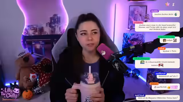 01:07:40Anlässlich ihres bevorstehenden Geburtstags am nächsten Woche plant die Streamerin einen besonderen Stream, bei dem sie einen Geburtstagskuchen backen möchte. Sie erwägt, eine Fertigbackmischung zu verwenden, und stellt dies als einen Wettkampf zwischen ihrer Backfähigkeiten und der Mischung dar. Wenig später muss sie den Stream jedoch abrupt abbrechen, nachdem ihr OBS-Programm aufgrund eines Anrufs von ihrer Freundin Sonja abgestürzt ist. Sie beschließt, den Stream für heute zu streichen, da auch die geplante Valorant-Lobby mit Knister und Asics nicht zustande kam, der Stream-Vibe nicht mehr stimmte und sie das Gefühl hatte, ein Zeichen zu bekommen, es sich etwas lockerer zu machen.