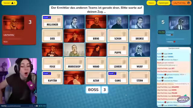 02:58:27Die Diskussion dreht sich um den Begriff 'Boss' und mögliche Verbindungen zu 'Sekretär', 'Kapitän' und 'Millionär'. Ein Boss beklaut seine Angestellten, um erfolgreich zu werden. Ein Boss hat Schuhe an und ein Dieb kann von einem Boss klauen. Es wird überlegt, ob 'Gangboss' eine gute Wahl wäre. Ein Lehrer ist theoretisch auch ein Boss einer Klasse. Die Begriffe 'Löwe' und 'Gang' werden diskutiert. Cardi entscheidet sich für 'Sekretär' und 'Gangboss'. Es bleibt die Frage, ob 'Millionär' noch ins Spiel gebracht werden soll. Lilly hat bereits alle Begriffe im Zusammenhang mit 'Tabakanbau' gefunden. Es wird überlegt, ob 'Zigarette' und 'Kippe' mit 'Triebwerksbrand' in Verbindung stehen könnten. Die drei verbleibenden Wörter sollen gefunden werden.