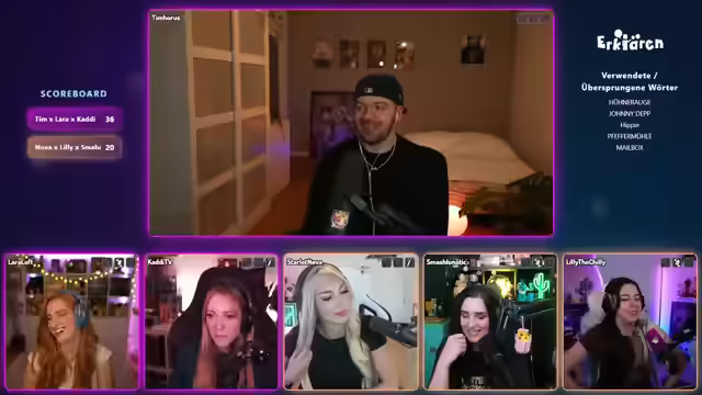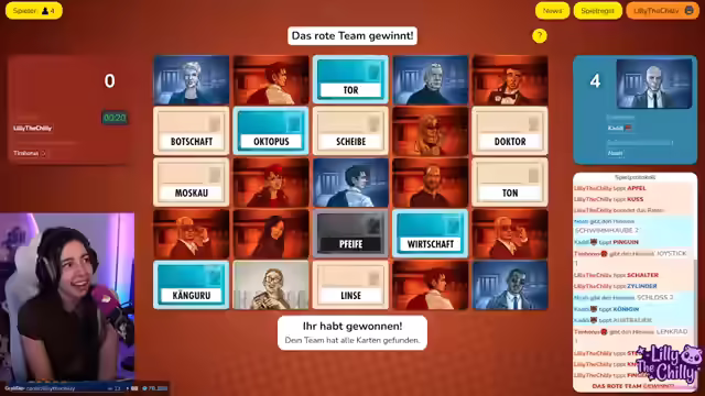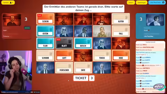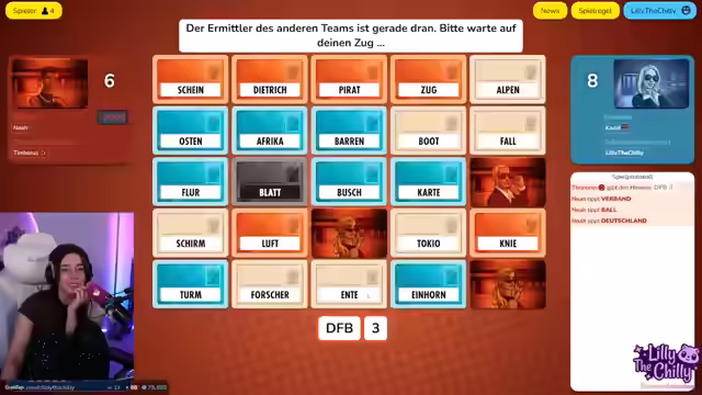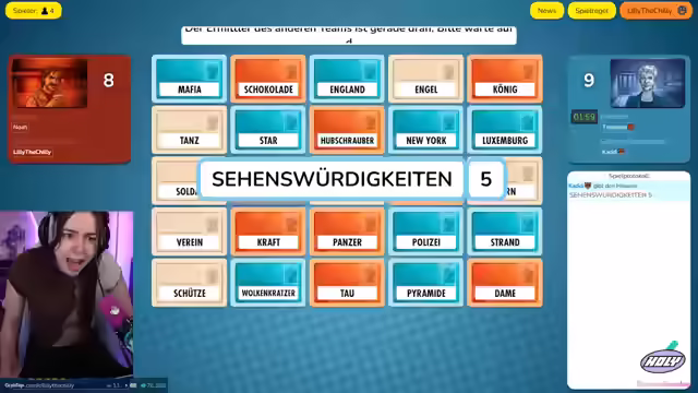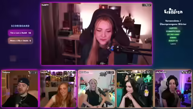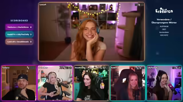 05:16:03Es wird versucht, sich auf die Begriffe zu konzentrieren und die grauen Gehirnzellen zusammenzuschalten, um möglichst viele Punkte zu holen. Es werden Begriffe wie 'Zoomen', 'Zwangsjacke' und 'Müsli' erklärt, wobei es Diskussionen über die Richtigkeit der Antworten gibt. Die Streamerin gibt zu, punktemäßig 'reingeschissen' zu haben, und die Punkte werden aktualisiert. Lara zeigt eine 'Speed-Performance' beim Erklären, und es werden Begriffe wie 'Desktop', 'Lampenfieber' und 'Affäre' erraten. In einer anderen Runde erklärt die Streamerin Begriffe wie 'Blaulicht Report' und 'Bundeskanzler', wobei es zu Verwechslungen und lustigen Momenten kommt. Die Teams liefern sich ein Kopf-an-Kopf-Rennen, und es kommt zu knappen Entscheidungen und Diskussionen über die Auslegung der Regeln. Die Streamerin lobt die Kreativität und den Einsatz der Teams.