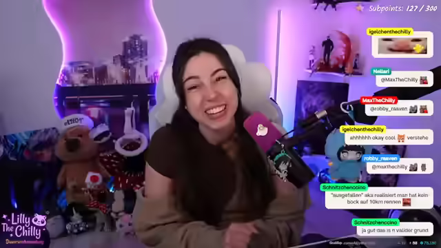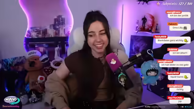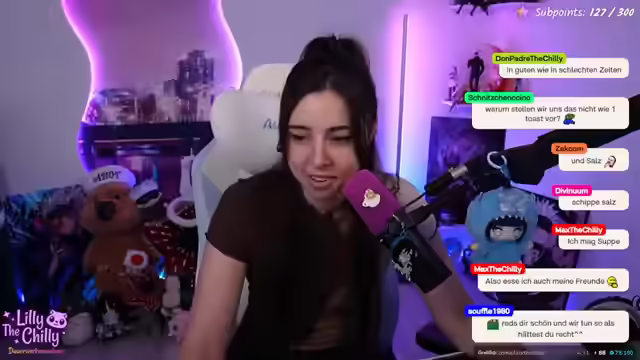 03:43:27Es entwickelt sich ein Gespräch über Katzen, wobei die Streamerin ihren Wunsch nach eigenen Katzen äußert, aber die aktuelle Lebenssituation als ungünstig dafür einschätzt. Ein Katzencafé in Berlin wird als mögliche Alternative erwähnt, und ein IRL-Stream dorthin wird in Erwägung gezogen. Die Frage, ob Lilly nach Berlin kommen würde, wird aufgeworfen, was zu humorvollen Kommentaren führt. Die Entfernung von Lillys Wohnort im Saarland nach Berlin wird thematisiert, und es stellt sich heraus, dass einige der Teilnehmenden nicht wissen, wo das Saarland liegt. Die Streamerin fordert daraufhin auf, alle Bundesländer aufzuzählen, was zu einigen Schwierigkeiten und Verwechslungen führt. Schließlich wird Nova begrüßt, die ihr League of Legends-Spiel gewonnen hat und sich für die Verspätung entschuldigt.