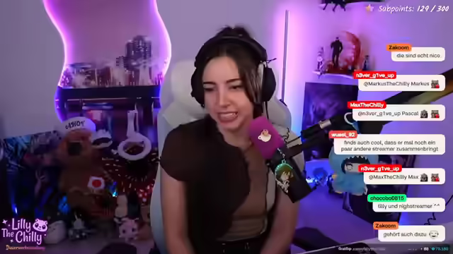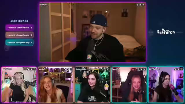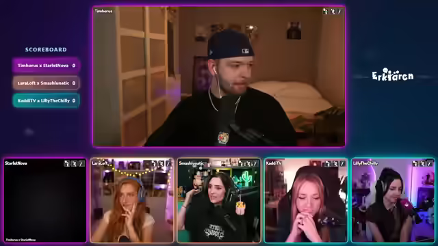 05:42:40Die Streamerin bedankt sich für die Teilnahme und das positive Feedback. Sie fand es cool, Dreierteams auszuprobieren und lobt die Action. Team Kim, Lara, Kadi gewinnen mit 51 zu 48 Punkten gegen Team Nova, Lillis, Malu. Es wird vorgeschlagen, das Format bei Gelegenheit zu wiederholen. Die Streamerin bedankt sich bei Tim für die Organisation und die gute Lobby-Zusammenstellung und lobt die positive Stimmung und die gute Laune aller Beteiligten. Sie kündigt zukünftige Late-Night-Streams an, darunter eine Lobby mit Wipekula, Franzi und Suki sowie eine weitere Lobby von Tim Horus, in der Among Us gespielt wird. Sie lobt Tims Formate und seine technische Umsetzung und bedauert, dass sie selbst nur einen Bruchteil ihrer Ideen umsetzen kann. Sie bedankt sich bei Noah für die Lobby und entschuldigt sich für die anfänglichen Schwierigkeiten. Abschließend bedankt sie sich bei allen Zuschauern für die Subs, Resubs, Gifted Subs, Bits und Follows und wünscht allen eine gute Nacht und einen fantastischen Tag.