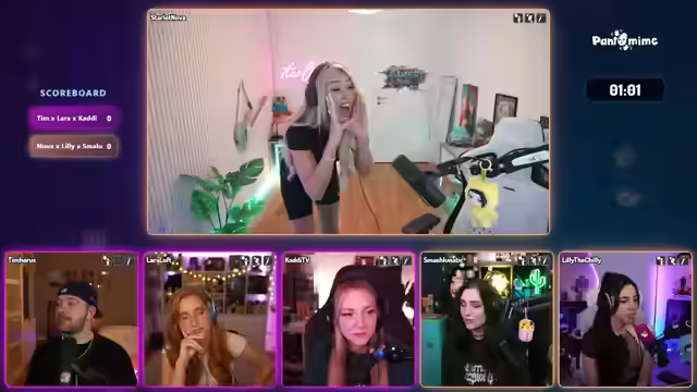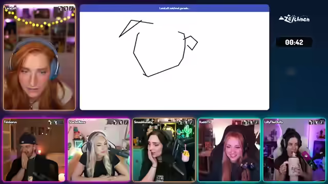 05:01:22Die Teams spielen verschiedene Runden Activity, wobei die Disziplinen zwischen Pantomime, Zeichnen und Erklären wechseln. Lara Loft muss zeichnen und malt unter anderem eine Streamerin, Jenyan, was zu lustigen Assoziationen im Chat führt. In einer anderen Runde erklärt Lilly Begriffe wie 'Heidi Klum' und 'Schnappschuss', wobei 'Schnappschuss' besonders gut ankommt. Es wird kurz diskutiert, ob ein bestimmter Begriff richtig gewertet werden soll, aber das Team entscheidet sich für Fairness und verzichtet auf den Punkt. Die Regie schlägt vor, die geskippten und erratenen Begriffe für die Zuschauer anzuzeigen, was positiv aufgenommen wird. Es folgen weitere Runden, in denen Begriffe wie 'Mafia', 'Halbkreis' und 'Tischtennisplatte' erraten werden. Es gibt auch einige Fehlversuche und lustige Missverständnisse, die für Unterhaltung sorgen. Die Streamerin entschuldigt sich für einen Fehler und zieht Punkte ab, um fair zu bleiben.