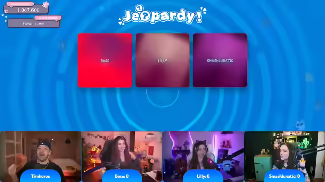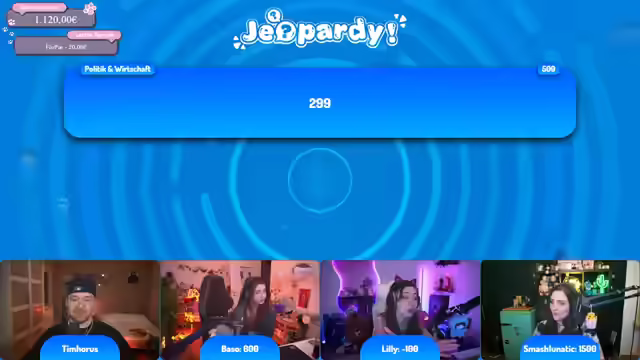 04:37:47Die Quizshow mit Tim Horus soll beginnen. Es wird geprüft, ob alle Teilnehmer im Discord hörbar sind. Ein gemeinsamer Chat für die Mitspieler wird eingerichtet. Tim erklärt die Regeln der Quizshow, die aus zwei Boards mit unterschiedlichen Punktwerten und einer finalen Schätzfrage besteht. Er erklärt, dass auch bei Minuspunkten am Finale teilgenommen werden kann. Die Streamerin äußert sich besorgt über die Größe ihres Gesichtsemotes und macht einen Audio-Test mit Mario-Sounds. Sie kündigt eine kurze Toilettenpause an, bevor es losgeht. Die Vorfreude auf Halloween wird thematisiert und Kostümideen werden diskutiert. Tim kündigt die Quizshow auf YouTube an und stellt die Teilnehmer vor. Er erklärt die Regeln und fordert die Zuschauer auf, die Mitspieler zu abonnieren und auszuchecken. Die Kategorien für das erste Board werden präsentiert, darunter Politik und Wirtschaft, was bei den Teilnehmern gemischte Reaktionen hervorruft.