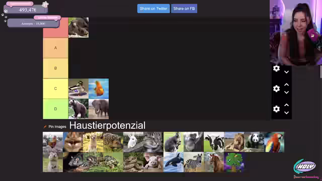 Start der Tierlist: Bewertung verschiedener Tiere als Haustiere