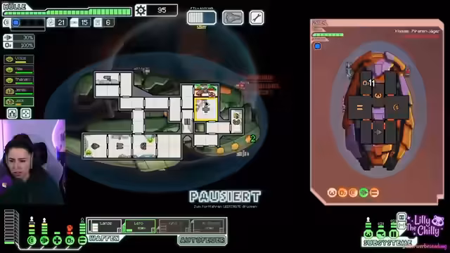 04:04:42Der FTL-Run wird fortgesetzt und der Spieler trifft auf mehrere, teils riskante Situationen. Dazu gehört der Hilferuf eines gestrandeten Schiffes und ein gefundener 'Virus', der sich nicht heilen lässt. Die Streamerin betont die Notwendigkeit, keine unnötigen Risiken einzugehen, um den Run zu überleben. Sie trifft wichtige Entscheidungen über Schiffsaufwertungen, wie den Kauf von 'Drohnensystemen', und kämpft gegen feindliche Schiffe, wobei sie ihre Crew-Mitglieder strategisch einsetzt, um Schäden zu minimieren.