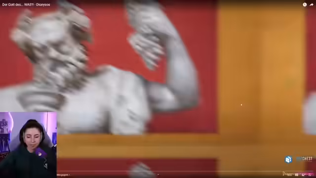 02:20:43Die Streamerin beginnt, die Geschichte des griechischen Gottes Dionysus zu erzählen, den sie als Schutzpatron des Berghains und des Techno-Festivals beschreibt. Sie schildert seine außergewöhnliche Geburt aus der Oberschenkel-Schwangerschaft von Zeus und seine frühe Kindheit, in der er vor seiner eifersüchtigen Stiefmutter Hera versteckt wurde. Die Erzählung konzentriert sich auf Dionysus' Rolle als Gott des Weins, der Ekstase und der Feierkultur.