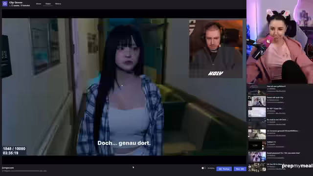 03:44:03Nach der Kochphase beginnt der Clip-Queue-Teil des Streams. Der Streamer reagiert auf Clips, die im Chat eingereicht wurden. Es werden humoristische und oft absurde Szenen behandelt. Ein Clip thematisiert eine fiktive Schwangerschaftserklärung, ein anderer einen unfairen Witz. Die Reaktionen sind geprägt von spontaner Freude und spielerischem Kommentar zur jeweiligen Situation.