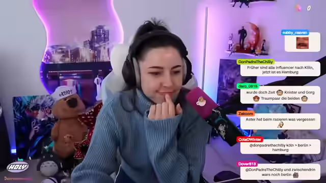 00:07:57Der Stream beginnt mit einem freundlichen Hallo und Erwähnung von Muskelkater durch vorheriges Training. Es wird über die Küchenaufräumaktion mit der Mutter gesprochen und die Vorliebe, direkt nach dem Kochen aufzuräumen, im Gegensatz zum Aufschieben. Ein Strawberry Cheesecake Tee von Teekanne wird vorgestellt, wobei der Caramel-Tee als Favorit genannt wird. Es folgt eine Diskussion über Teetrinkgewohnheiten, ob mit oder ohne Zucker, und die Vorliebe für Tee im Winter. Es wird auf die Kälte im Raum eingegangen und die Nutzung einer Sitzheizung und eines Lüftungs-Beheizungsgeräts thematisiert, um den persönlichen Bedarf an Wärme zu decken, da die Eltern das Haus nicht unnötig heizen möchten. Es wird ein kurzer Einblick in den Streamplan gegeben, der durch eine Anfrage von Junikads, für sie am 4.10. einzuspringen, geändert wurde. Daher wird am Samstag gestreamt und dafür Donnerstag/Freitag frei gemacht. Trotz des anstrengenden Wochenendes wird heute ein kurzer Stream gemacht, da eine Zusage für die Peak Lobby gegeben wurde.