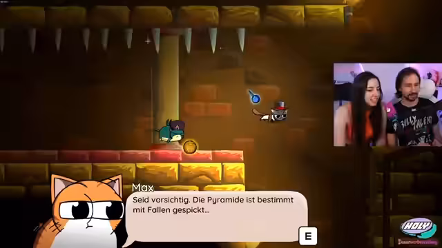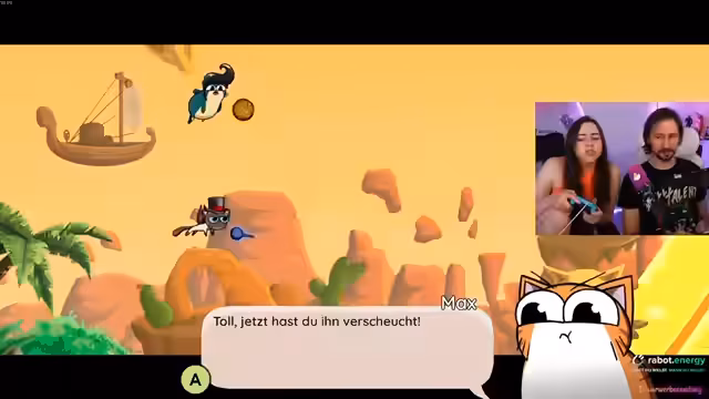 01:50:28Die Streamerin und ihr Bruder haben das zweite Level von Yarn Guardians erfolgreich abgeschlossen. Nach der Konfrontation mit Max in der Arena ist dieser wieder Teil des Teams und hat gelernt, Verantwortung zu übernehmen. Die nächste Mission führt die Gruppe in die Wüste Osara, um einen weiteren Yarn-Ball zu finden. Der Stream endet damit, dass das Team sich auf den Weg dorthin macht.