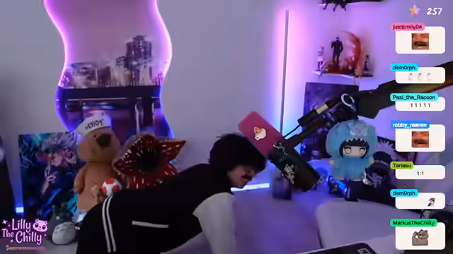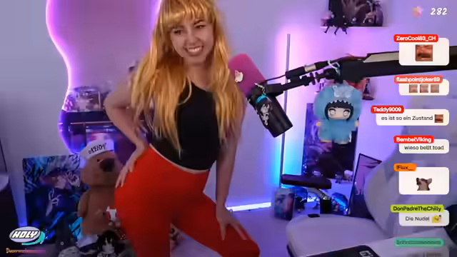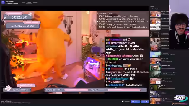 04:15:13Der Streamer erwähnt ein spontanes Just Dance-Paddle mit Lilly und zeigt verschiedene Tanzmoves. Er wechselt mehrmals das Cosplay, darunter Obanai und Frieren aus Demon Slayer, und interagiert intensiv mit dem Chat. Dabei kommt es zu humorvollen Missverständnissen, zum Beispiel über die Haare und die Identität. Zuschauer wie Janik und Asta werden erwähnt, und der Streamer reagiert auf Kommentare und Aktionen im Chat.