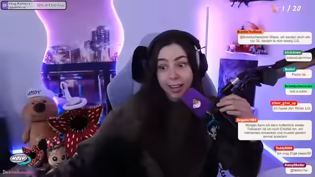 00:09:28Der Stream richtet sich auf ein bevorstehendes Quiz mit Privit, bei dem Lilly mit ihrem Allgemeinwismus glänzen möchte. Gleichzeitig diskutiert Lilly ihre Gewohnheit, stets 'den Kabel' statt 'das Kabel' zu sagen, was von Chat-Mitgliedern korrigiert wird. Sie erklärt, dass diese Floskel sich in ihrem Kopf fest eingebrannt hat und sogar ihre Eltern sie nicht korrigieren. Lilly ist dankbar für diese Korrekturen, da sie dadurch die deutsche Sprache verbessert und dies nicht als Beleidigung sieht, sondern als hilfreiches Feedback.