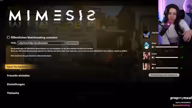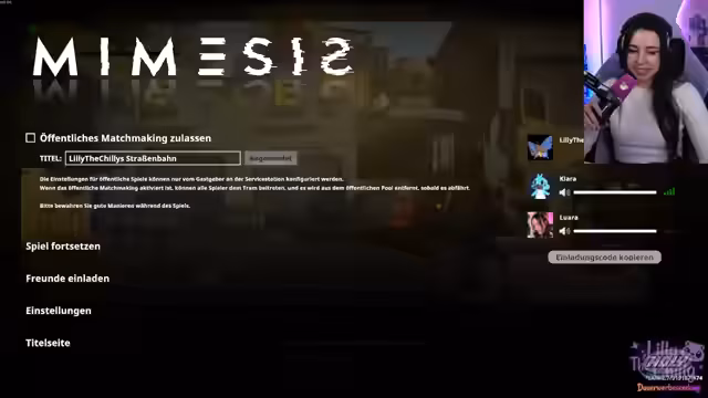 03:11:09Ein neues, horrolastiges Multiplayer-Spiel namens 'Tram' wird gemeinsam mit den Chat-Mitgliedern Vera, Luara, Chiara und Simon gestartet. Das Ziel ist, als Team eine Tram zu reparieren, während man in gefährlichen Gebäuden nach Ressourcen sucht und Monstern ausweichen muss. Nach anfänglichen technischen Problemen mit den Mikrofonen und Ingame-Sprachfunktion, wird das Spiel erfolgreich gestartet und die ersten Schritte unternommen.