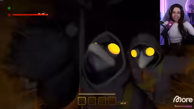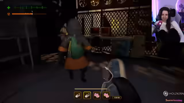 02:30:30Ein sehr unheimliches Spiel wird gespielt, das die Streamerin erschreckt und dazu bringt, den Bereich vorübergehend zu verlassen. Kurz darauf meldet sich ein Nutzer namens 'Vera' im Chat, der sich musikalisch begabt gibt und auf die Streamerin neugierig wirkt. Ein Chatnutzer teilt eine Übersetzungsnotiz zu dem 'Sneaking'-Spiel mit, um eine falsche Bezeichnung zu korrigieren. Die Streamerin reagiert auf das Spiel und den Auftritt von Vera.