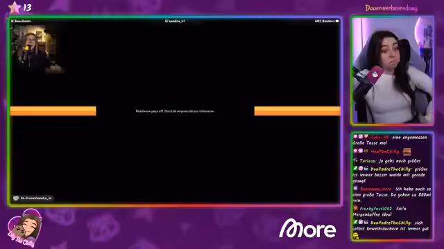 03:04:47Die Streamerin kündigt erfolgreiche Kooperationen mit den Unternehmen 'Prep My Meal' und 'More Nutrition' an. Dank der Unterstützung der Community konnte die Zusammenarbeit mit 'Prep My Meal' verlängert werden und 'More Nutrition' plant sogar für drei Monate im Voraus zu buchen. Die Streamerin bedankt sich ausdrücklich bei der Community für den Einsatz ihrer persönlichen Rabattcodes.