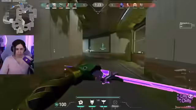 02:59:17Der Stream schwenkt zu dem angekündigten Valorant-Spiel über. Lilly spielt mit einem festen 5-Stack, bestehend aus Tim Horus, Baso, Beharrt, Bart und Emi, zusammen. Vor dem Matchmaking testet der neue Agent "Gekko" im Custom-Modus, dessen Fähigkeiten wie das platzieren von Drohnen zur Sabotage oder das Verlangsamen von Gegnern besprochen werden. Die Aufregung für das anstehende Spiel steigt.