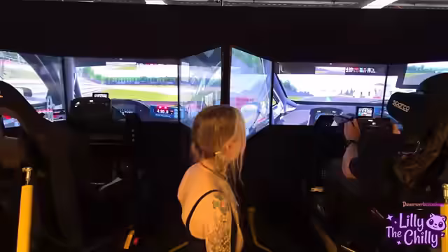 03:55:21Die Streamerinnen testen die Kommunikation im Simulator und bereiten sich auf das Rennen vor. Lilly gibt an, seit drei Jahren nicht mehr Auto gefahren zu sein. Nach anfänglichen Schwierigkeiten mit der Steuerung und der Strecke, finden sich die Streamerinnen langsam zurecht. Lilly fährt zunächst planlos und gibt nur Vollgas, während Ronja versucht, die Strecke zu meistern. Es kommt zu lustigen Situationen, in denen Lilly gegen Wände fährt und die Orientierung verliert. Ronja gibt Tipps zur Fahrweise und erklärt, wie man die Ideallinie erkennt. Beide Streamerinnen verbessern ihre Zeiten im Laufe des Rennens. Sie kommentieren ihre Fahrten und amüsieren sich über die ungewohnte Situation. Am Ende des Rennens werden die besten Zeiten verglichen.