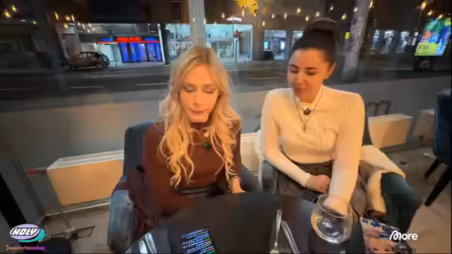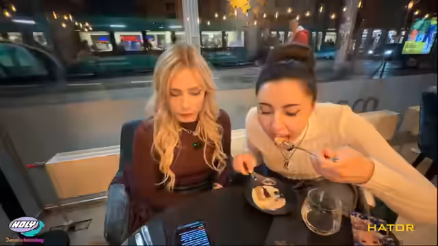 03:34:21Nach mehreren Runden des Essens und Bestellens geht es hauptsächlich um die Unterhaltung. Sie probieren verschiedene Desserts wie Cheesecake und Dubai Chocolate Ice Cream und loben den Geschmack. Die Stimmung ist gelassen und humorvoll, wobei sie sich gegenseitig aufziehen und Scherze über die vorherigen Essensrunden machen. Es werden auch persönliche Ziele wie eine harte Pilates-Stunde am nächsten Tag thematisiert.