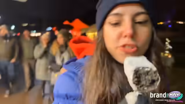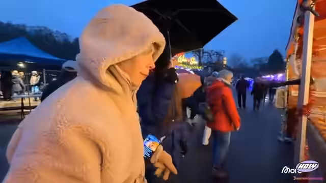 02:36:32Beim weiteren Erkunden des Weihnachtsmarktes begegnet die Streamerin Polizeibeamten und macht humorvolle Bemerkungen über 'Red Flags' bei Polizisten und Fußballern. Sie äußert sich kritisch gegenüber dem Aufhängen von Bildern berühmter Persönlichkeiten im Wohnzimmer. Der Markt wird zunehmend voller, was die Fortbewegung erschwert. Es wird festgestellt, dass die Veranstaltung für ältere Menschen aufgrund der weiten Wege anstrengend sein könnte, obwohl ein Fahrdienst angeboten wird. Die Gruppe entdeckt verschiedene Essensstände, darunter einen mit Mini-Donuts und einen mit Pommes und Mozzarella-Sticks. Es gibt auch einen 'Christmas Karaoke'-Bus, der zum Mitsingen einlädt. Die Streamerin und ihre Begleitung überlegen, was sie essen sollen, wobei die Streamerin einen kleinen Crepe bevorzugt, während ihre Begleitung etwas Herzhafteres sucht. Es wird auch über die Herstellung von Babyschuhen und verschiedene Käsesorten gesprochen.