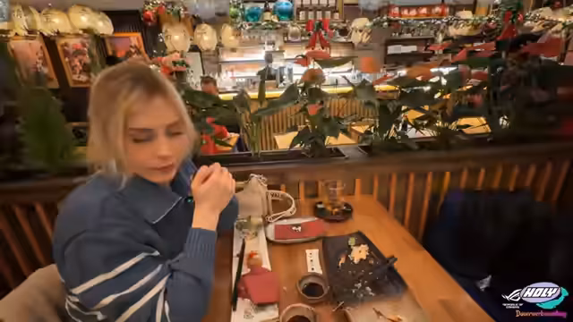 04:34:50Die Streamerinnen bestellen ihr Essen, wobei der Fokus auf Sushi liegt. Es werden spezifische Gerichte wie ein Deluxe-Menü ohne Suppe, Sake Nigiri und frittiertes Hähnchensushi ausgewählt. Sonja bestellt einen Ingwertee, obwohl sie Ingwer nicht mag, mit der Begründung, dass er gut für die Gesundheit sei. Es wird über verschiedene Teesorten wie Jasmintee gesprochen. Die Atmosphäre im Restaurant wird als weihnachtlich dekoriert beschrieben. Es kommt zu einer Diskussion über die Vorlieben bei Sushi und die Qualität von Sushi im Allgemeinen, wobei die Streamerinnen betonen, dass gutes Sushi einen großen Unterschied macht.