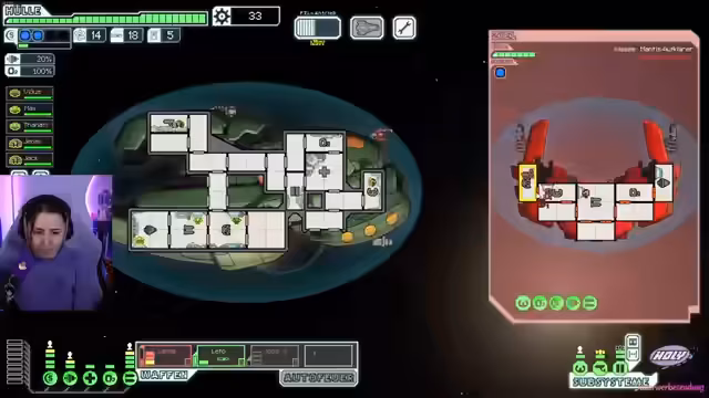 03:19:26Zu Beginn des Streams steht das Spielen eines Space-Simulationsspiels im Fokus. Die Streamerin navigiert durch das Spiel, kümmert sich um die Crew ihres Schiffes und trifft Entscheidungen, die den Fortschritt beeinflussen. Sie wählt neue Crewmitglieder basierend auf deren Kosten und Länge des Namens, kämpft gegen Alien-Spinnen und trifft auf eine Gruppe, die vor Rebellen flieht. Dabei wird die Taktik des Teams diskutiert, insbesondere die Abwesenheit eines bestimmten Charakters, der in der Vergangenheit oft zum Tod der Crew führte.