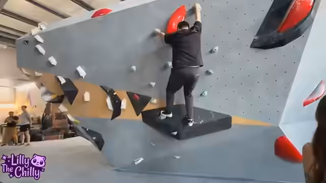 02:55:40Die Streamer beginnen mit der Chaos Koch-Challenge, die hier jedoch eher als Kletter-Challenge bezeichnet werden muss. Sie erklären die Route und die Startpunkte, wobei sie sich an den offiziellen Plaketten orientieren. Lilly und Kirsten haben unterschiedliche Herangehensweisen: Lilly hat sich unten festgehangelt und hochgedrückt, während Kirsten mit den Fingern kämpft. Beide erleben Schwierigkeiten bei den verschiedenen Grifftechniken, wobei Lilly sichtlich besser zurechtkommt. Die Größe und Körperkraft spielen hier eine wichtige Rolle, was Kirsten verunsichert.