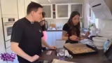 01:00:43Ein zentraler Punkt des Streams ist der gemeinsame Kochversuch, bei dem Kekse gebacken werden. Dabei kommt es zu zahlreichen Diskussionen über die Zutaten, insbesondere über ungewöhnliche Gewürze wie Rosmarin oder Thymian, die eigentlich nicht in Keksen gehören. Auch werden die Backfähigkeiten der Streamer humorvoll in Frage gestellt. Die Szene wird durch das Erscheinen eines Elternteils unterbrochen, das in den Stream einbezogen wird und die Kekse probiert.