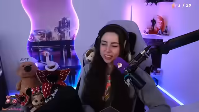 00:32:36Plötzlich hat die Streamerin Sehstörungen und das Bild wird unscharf. Zuschauer vermuten mögliche Ursachen wie Migräne, trockene Augen oder Überanstrengung. sie hat Augentropfen und hat die Lichter im Raum gedimmt, um die Symptome zu lindern. sie überlegt, sich eine Blaulichtfilterbrille zuzulegen.