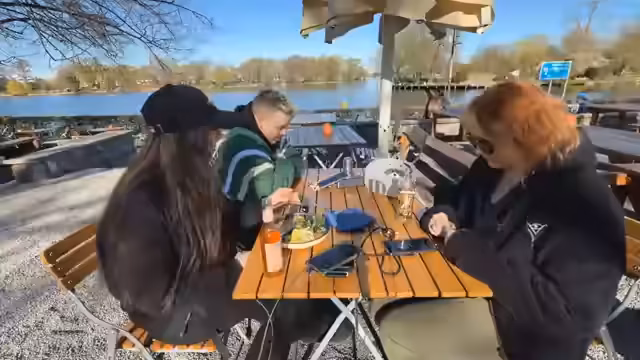 05:05:17Am Ufer des Treptower Parks entspannt sich das Team und genießt die Sonne. Die Idee, mit einem Tretboot oder einem Hausboot zu fahren, wird angesprochen, doch der Fokus liegt zunächst auf der Entspannung. Olli schlägt einen Treffpunkt mit einem Whirlpool-Boot vor. Yvraldis erinnert sich an eine frühere Koch-Party auf einem Hausboot mit anderen Streamern und entwickelt die Idee eines Bootstouren-Events für die Zukunft, um die Community zu binden und gemeinsamen Content zu schaffen.