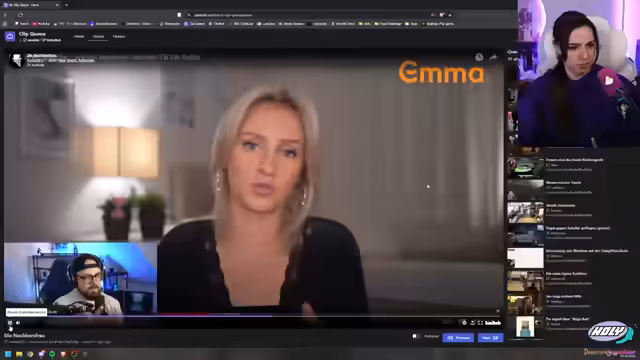 02:37:35Der Stream führt nun zum eigentlichen Kerninhalt, "Stream Clips Germany". Die Streamerin begrüßt die Zusch herzlich zu diesem Format und zeigt begeistert das Thumbnail, auf dem sie selbst abgebildet ist. Sie macht sich über den lustigen und oft chaotischen Chat lustig und vergleicht die Zuschauer mit Bewohnern eines betreuten Wohnheims, was zu humorvollen Reaktionen führt. Die Szene ist geprägt von einem lockeren, geplauderten Ton und der Vorfreude auf die gezeigten Clips.