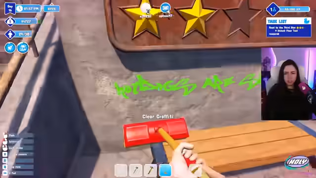 04:12:40Der Betrieb des Wasserparks bringt unvorhergesehene Probleme mit sich. Gäste verletzen sich häufig, unangemessenes Verhalten wie das Spannen während des Duschens wird thematisiert und das Personal arbeitet oft unzuverlässig. Die Streamerin reagiert frustriert auf die chaotische Situation und versucht, mit unkonventionellen Methoden wie Schubsen Ordnung in den Park zu bringen.