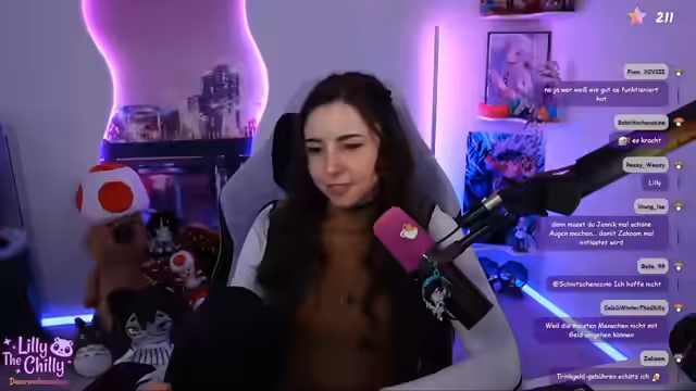 00:00:31Nach dem Start des Streams wird Lillys neues, frisiertes Outfit direkt im Chat thematisiert. Besonders die selbstgemachten Hollywood-Locken erhalten viel Lob, was Lilly in Staunen versetzt und sie dazu bringt, über ihre neue Haarstruktur zu sprechen. Die Locken werden zum Dauerthema, das von Lilly als ihr neues Markenzeichen bezeichnet wird und angeblich zu mehr Followern führen soll. Parallel dazu wird ein langanhaltender Sub-Marathon begonnen, bei dem die Zuschauer eine 200-Sub-Marke erreichen wollen, um den Streamer dazu zu bringen, das Spiel Marvels für mehrere Stunden zu spielen.