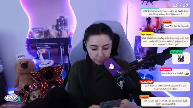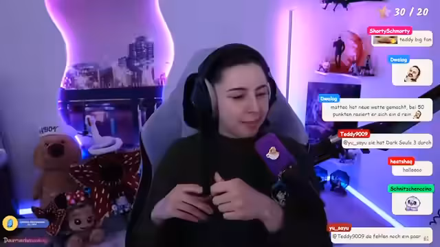 04:47:29Während des Streams teilt die Streamer(in) persönliche Einblicke, wie etwa ihre Wohnungssituation (sie trinkt aus einer Vase, da kein Geld für Gläser vorhanden ist) und ihre Liebe zu bestimmten Spielen wie 'Dark Souls'. Sie äußert ihre Freude an zukünftigen Events wie der 'Kaktus' und kündigt ihren eigenen Stream-Plan für die kommende Woche an, darunter einen IRL-Stream am Freitag.