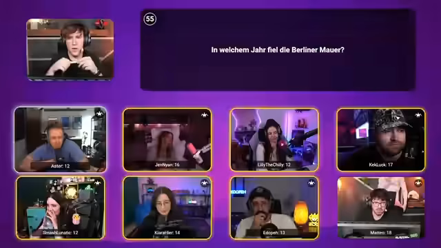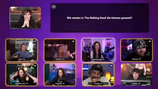 03:51:29Die Runde wechselt zu kulturellen Fragen, wie "Welcher berühmte Maler schnitt sich ein Ohr ab?". Der Streamer Co-Pilot spielt die Dynamik der Teilnehmer aus, in dem er gezielt eine Person auswählt, von der er annimmt, dass sie es wissen muss, während er eine andere, die ebenfalls mitspielt, gezielt nicht auswählt. Die Spannung steigt, da alle wissen wollen, wer die Antwort weiß. Das Format erzeugt durch diese gezielten Zuordnungen eine einzigartische Interaktion und Rivalität unter den Teilnehmern.